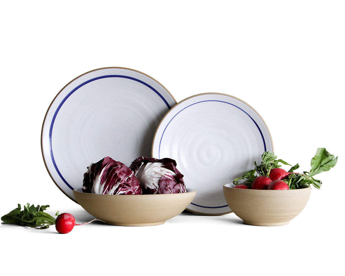 Our products are made of ceramic stoneware, using clays sourced in the northeastern United States. Each piece is designed with a thick build, constructed by hand, and kiln-fired to temperatures over 2,000 degrees Fahrenheit to ensure maximum strength and durability.