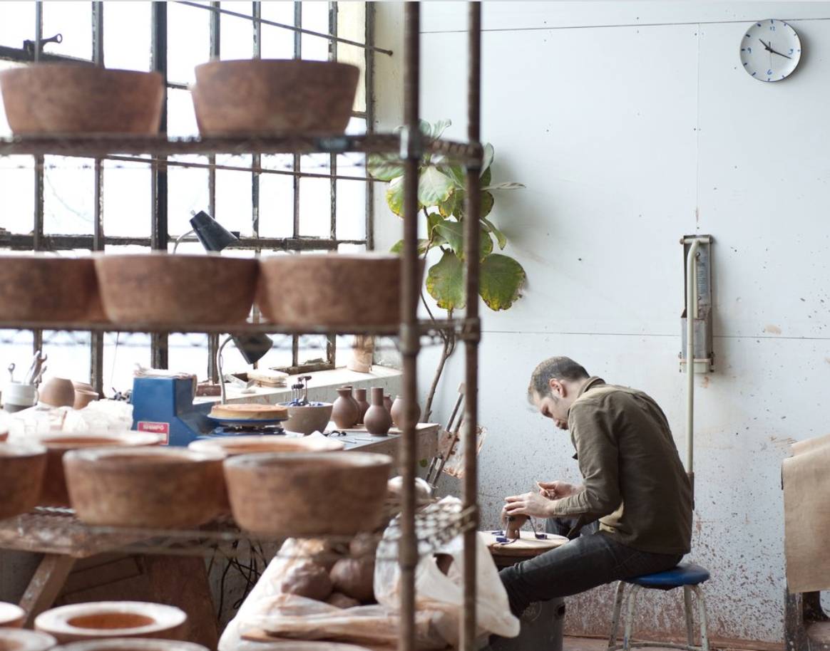 Each piece that Jono has designed has its own unique production process, which can entail as many as 15 individual steps, and use methods such as slip casting, jiggering, and good old-fashioned wheel throwing. Our studio is equipped with 10 kilns and 6 wheels and we begin each day with the thrill of opening our Blaauw kiln to discover the finished pieces we loaded in the night before.