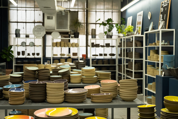 We'll have stacks of overstock dinnerware in white and color glazes, plus seconds and pieces from the archive. If you're looking to stock your restaurant, this is the time to do it.