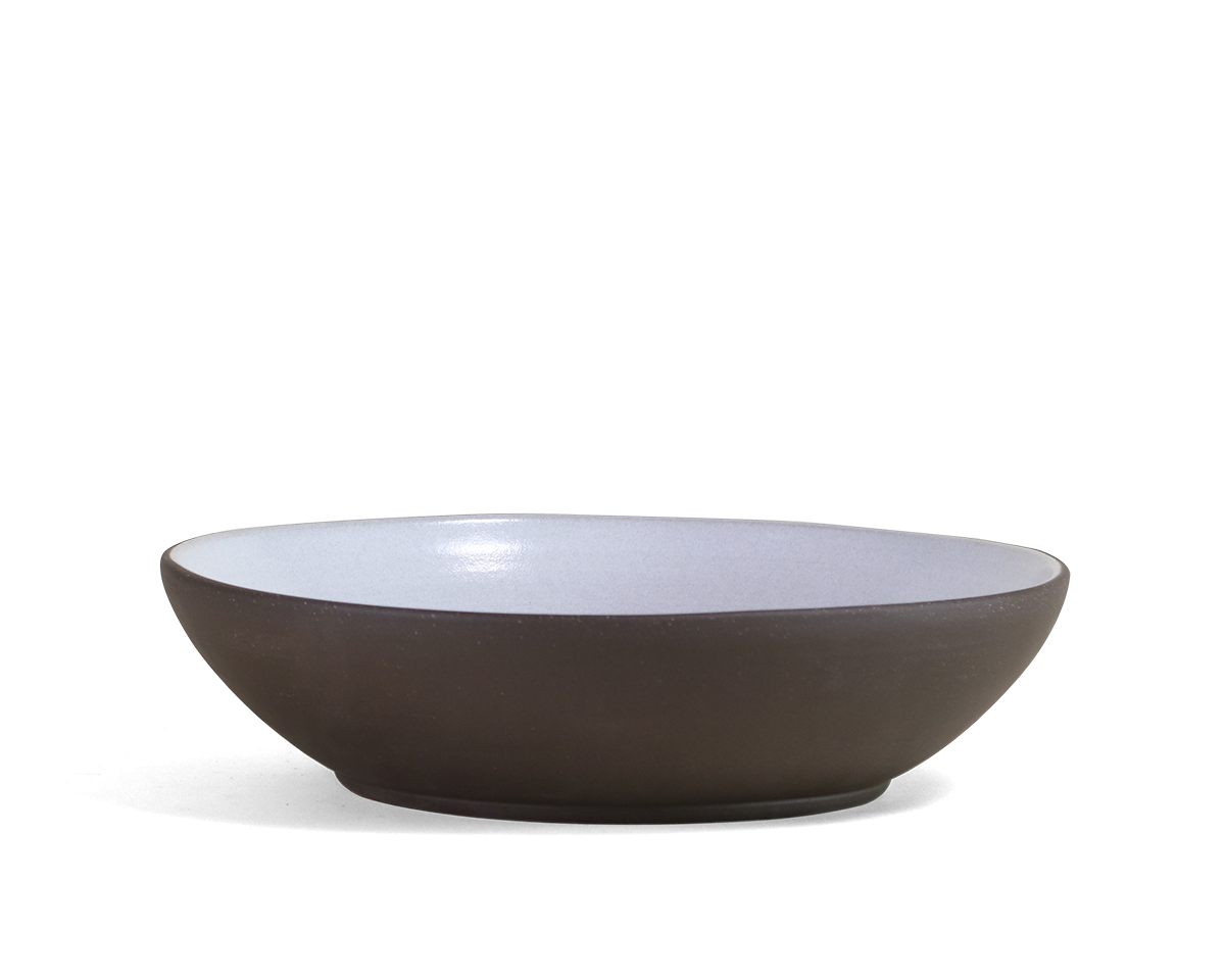 Dark Brown / White is our foundational clay and glaze combination, available in the largest assortment of shapes. With this pairing, we apply a slightly thinner coat of glaze than on our Toasted clay—enabling some of the darker clay beneath to be seen and giving the glaze an off-white tone.